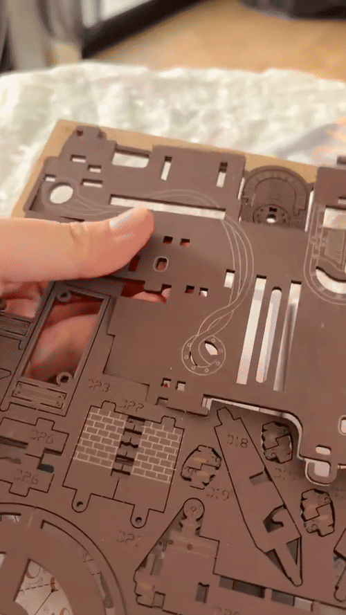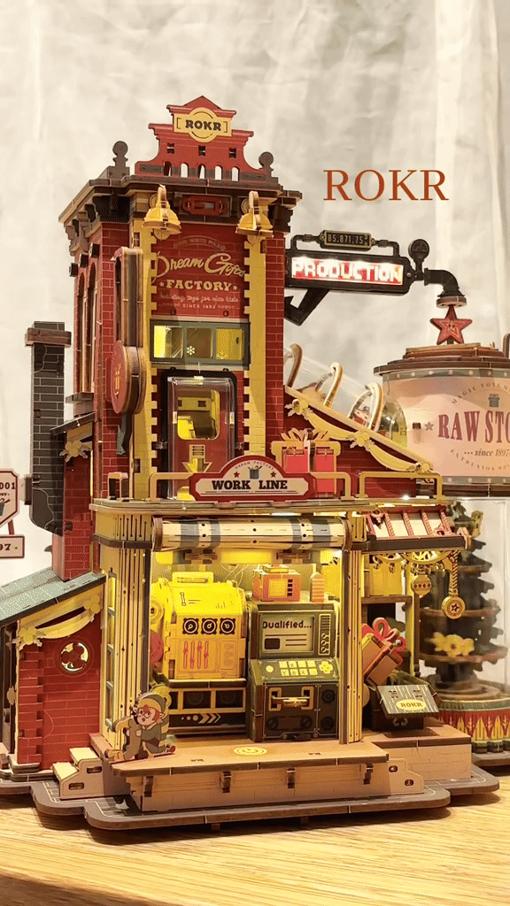 It’s a 3D wooden puzzle that you build yourself — and when completed, it becomes a working music box with moving gears, glowing lights, and festive Christmas charm.